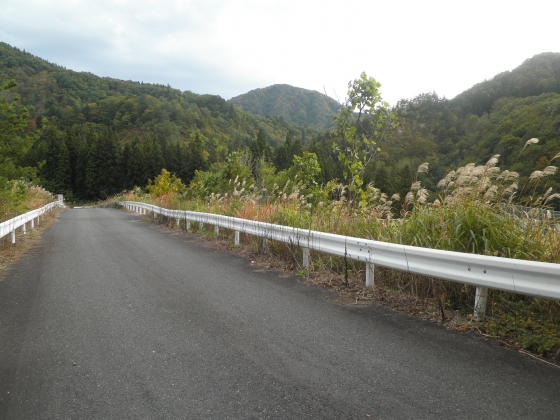 中央前方の山峡の向こうにある山は、新潟県の阿賀町にある戸屋山です。 この道路と直角に道路の下を、磐越道が走っています。