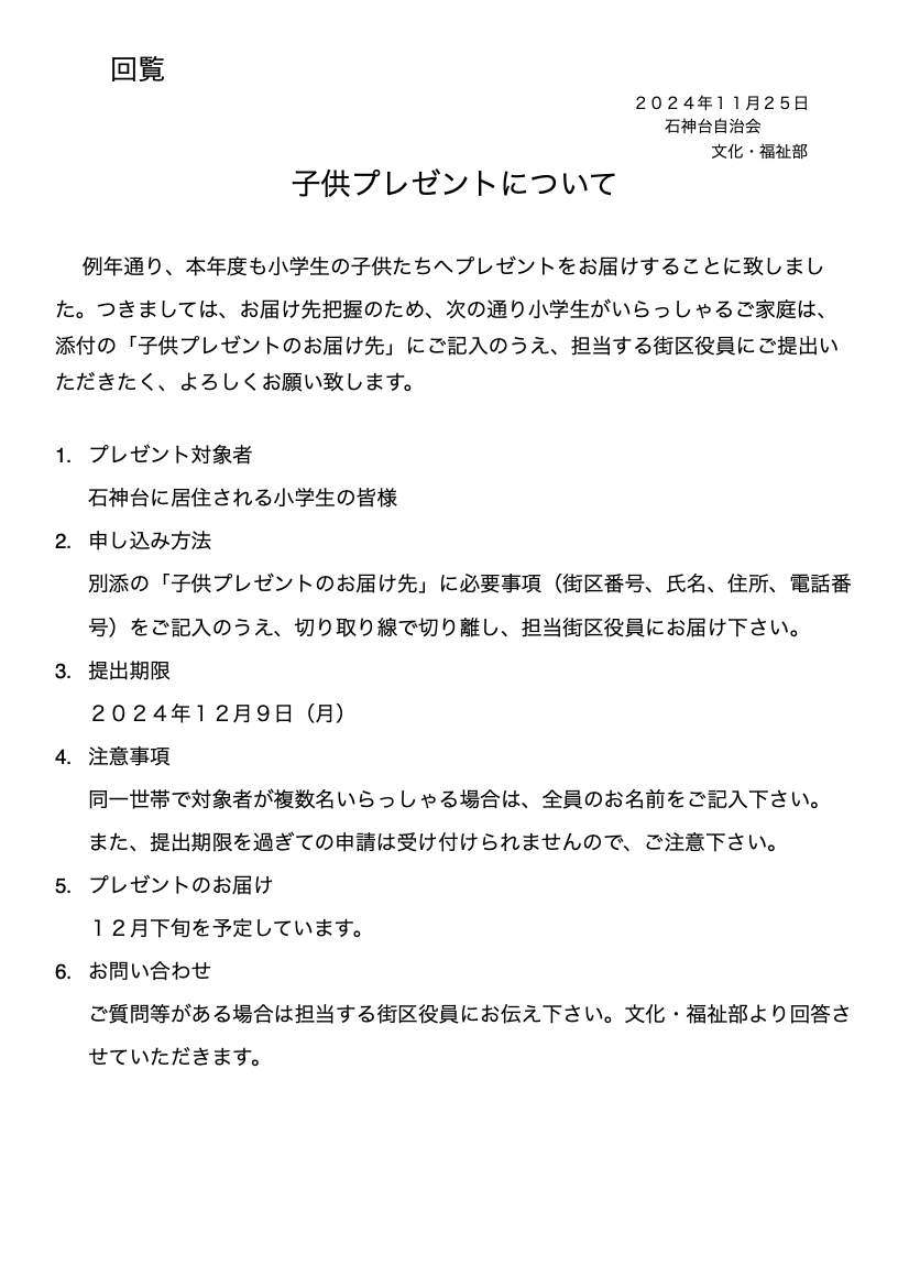 石神台自治会より