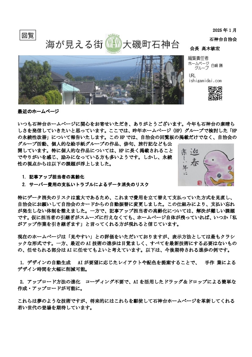最近のホームページを案内する回覧の2025年1月号を発行しましたのでお知らせします。