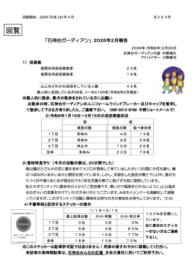 「石神台ガーディアン」2026年2月報告 mirio2026年2月28日2026年2月28日 自治会からのお知らせ No Comments 過去の石神台ガーディアン月報をご覧になりたい方はこちらから → 石神台ガーディアン ← 大磯駅前 令和8年3月号 コメントを残すコメントをキャンセル